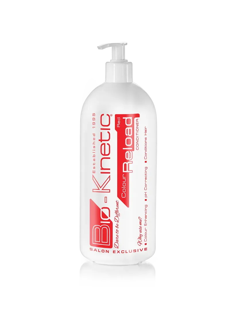 Bio-Kinetic Colour Reload Red Conditioner_500ml is a Colour Enhancing product that will greatly enhance the red effect in the hair. The product will leave the hair feeling softer and more manageable. It can be used as often as required. This product has a pH correcting formula to help reduce colour stripping.